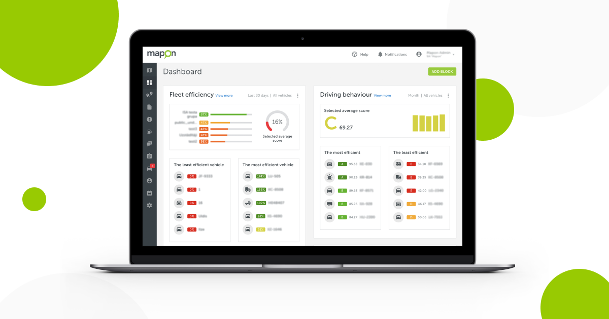 User experience is what makes customers choose one product over another. At Mapon, we strive to make our platform as easy-to-use and understand as possible, and it can only be done by taking into account what our clients have to say. Recently, we’ve got feedback that there is plenty of useful information in our system that offers a very detailed look into the state of the company fleet, but it takes a lot of time just to click through all sections and find all that data. That allowed our team to come up with Dashboards – an entirely new section that will allow you to keep track of the most important information of your fleet.