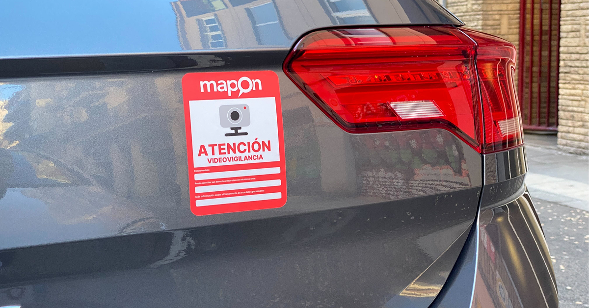 Coloca una pegatina sencilla que indique que la grabación de video está activa, siguiendo en este sentido con las recomendaciones de la Agencia Española de Protección de Datos y la guía sobre el uso de videocámaras que a tales efectos ha publicado. Esto garantiza que todos estén informados. Tu manager de cuenta de Mapon te proporcionará plantillas para imprimir.