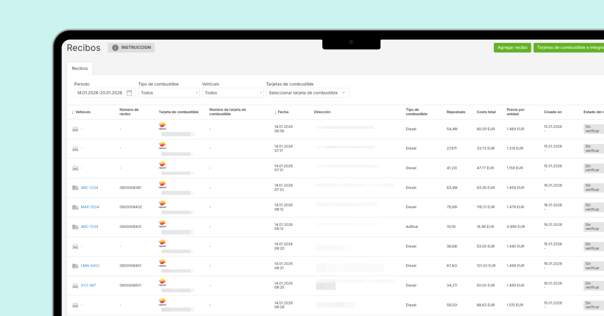 Por ejemplo, un gestor de flota puede identificar en segundos si una tarjeta de combustible ha pagado una determinada cantidad y comprobar si ese combustible ha entrado realmente en el vehículo asociado a esa tarjeta, analizando si los kilómetros recorridos y el consumo posterior son coherentes. Todo ello sin necesidad de revisar tickets, facturas ni hojas de cálculo.