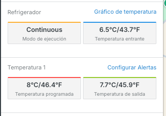 Captura de pantalla sobre información del refrigerador de la plataforma de Mapon
