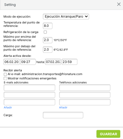 Además, Mapon cuenta con una opción para utilizar el sistema de alertas en el enfriamiento de la carga. En algunos casos, la carga debe transportarse a +4 °C, pero no se encuentra a esa temperatura en el momento de la carga. Si el conductor establece una temperatura de consigna de +4 °C y la temperatura real de la carga está alrededor de +15 °C, la unidad de refrigeración enfriará rápidamente el compartimento a una temperatura inferior a 0 °C para alcanzar el ajuste deseado lo más rápido posible.