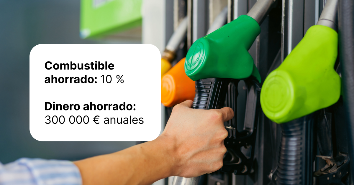 Una reducción del 10% en el consumo de combustible se traduce en aproximadamente 24.900€ en ahorros mensuales, o casi 300.000€ anuales.