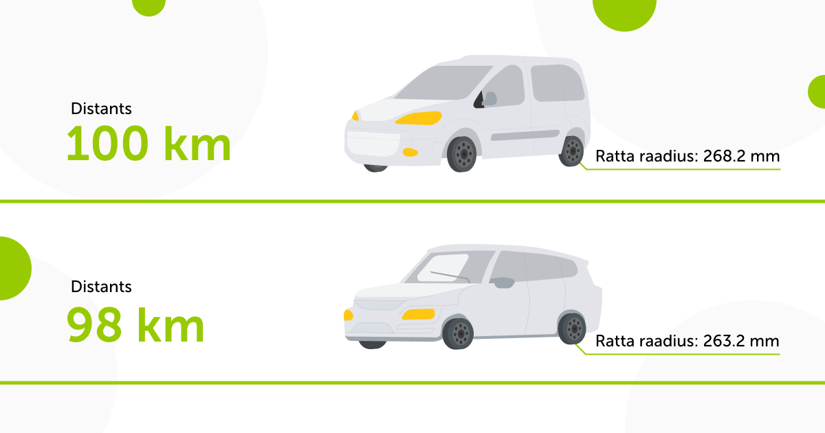 Rehvide seisukord ja eelkõige ratta raadius on üks tegur, mis mõjutab vahemaa näitu. Vastavalt rahvusvahelistele õigusaktidele võib uute rehvide turvise sügavus olla vahemikus 6–10 mm, kusjuures vähim seadusjärgne sügavus on suverehvide puhul 1,6 mm ja talverehvide puhul 3–4 mm. See tähendab, et turvise sügavuse vähendamine vähendab ka ratta raadiust. Arvestatakse,