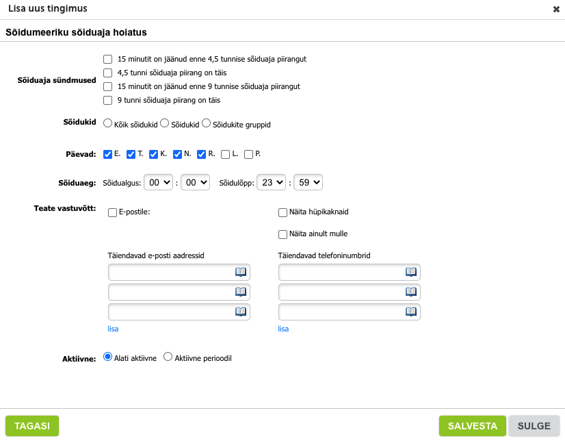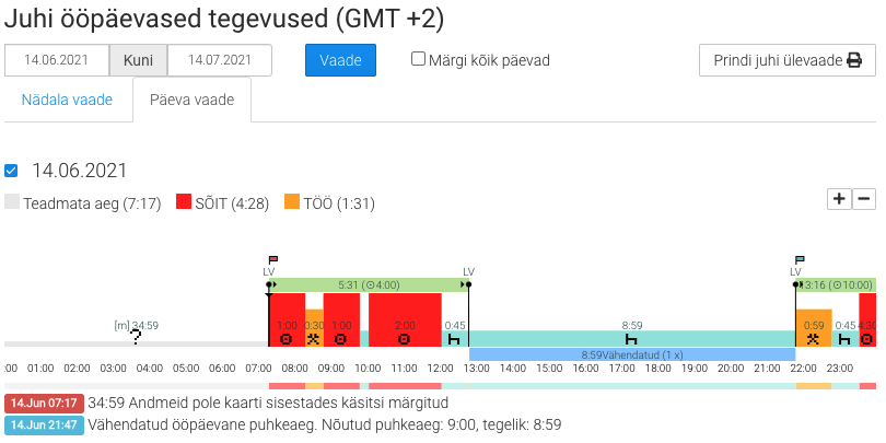 - jälgida töötajate sõiduaegu reaalajas andmete ja hoiatuste abil;