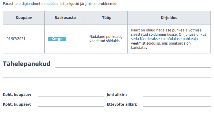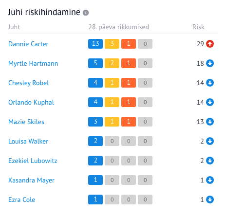 - saada regulaarset ülevaadet juba analüüsitud sõidumeerikute andmetest, et oma riske juhtida;