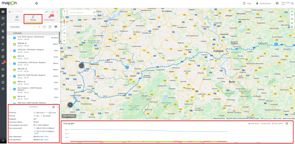 Mapon võimaldab jälgida kütusekulu, kasutades selleks kütusetaseme andureid või pardaarvutis (CAN) saadaolevat teavet. Andmed laaditakse üles Maponi platvormi, näidates ülevaatlikult sõiduki läbitud marsruuti, sisselülitatud süüte ja tühikäiguga seismise aega, läbitud vahemaad ja kogu kütusekulu. Samuti on võimalik tuvastada kütusevarguse juhtumeid.