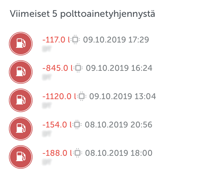 Polttoaineenkulutus on erittäin tärkeä mittari mille tahansa kalustolle. Siksi olemme luoneet 10 erilaista datamoduulia, jotka voit lisätä Ilmoitustauluun:
