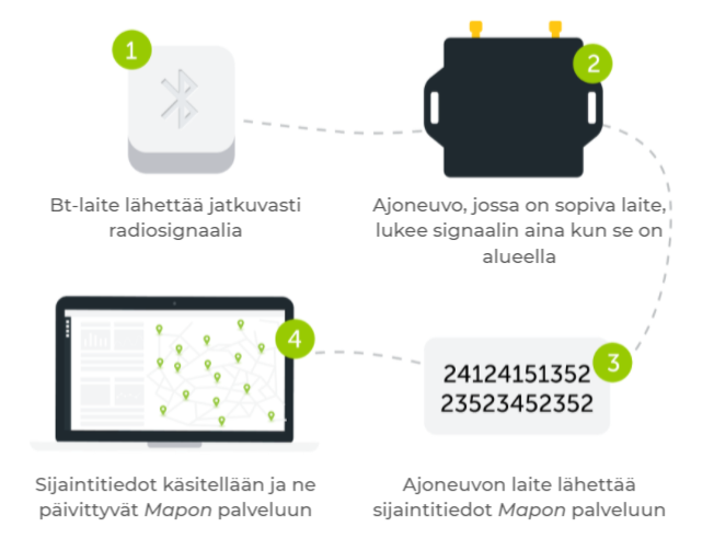 (2) BLE-omaisuuden seuranta Maponin avulla