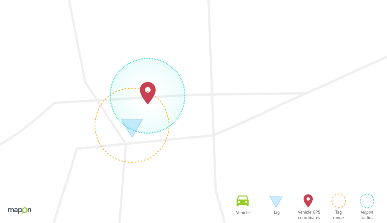 BLE-tägin sijainnin tarkkuus riippuu ensisijaisesti sen taajuudesta, herkkyydestä ja alueesta, kuten Mapon-järjestelmässä näkyy. Heti kun telematiikkalaite saapuu vastaavan BLE-tägin alueelle, sijainti määritetään.