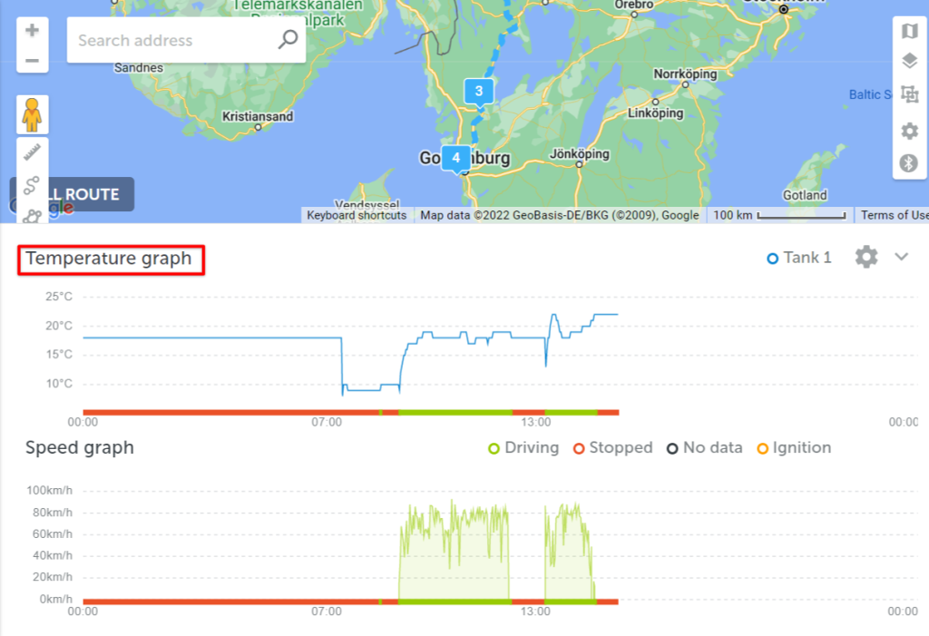 Lämpötilan valvonta toimii erityisen tehokkaasti yhdessä reaaliaikaisen GPS-paikannuksen kanssa. Tällöin saat tietoosi tarkasti, missä ja milloin lämpötilavaihtelut todennäköisimmin vaikuttavat kalustoosi. Saman paikannuslaitteen avulla voit myös tarkkailla kylmälaiteyksikön lataustasoa ja käyntitunteja.