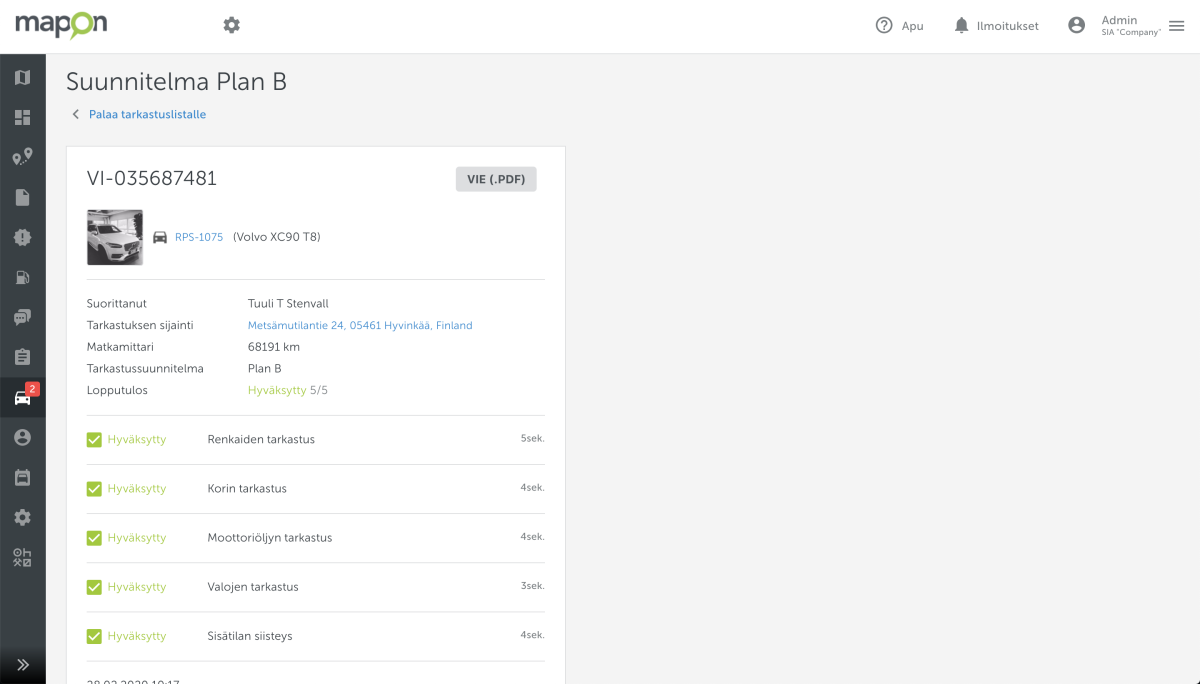 Ajoneuvotarkastusten tekeminen on erittäin tärkeää kunnossapidon takia ja välttääksesi tarpeettomia ja kalliita korjauksia. Monet yritykset käyttävät kuitenkin paperilomakkeita ja tämän takia tarkastusprosessi on pitkäkestoinen, aikaa vievä ja kallis. Siirtyminen digitaalisiin tarkastuksiin tarjoaa yrityksille monia uusia mahdollisuuksia. Ensinnäkin yritykset voivat luoda monentyyppisiä tarkastuslomakkeita ja kohdistaa nämä eri ajoneuvoryhmiin. Toiseksi kuljettajat voivat lisätä valokuvia ja muistiinpanoja tarkastustiedostoihin, jos he huomaavat kalustossa vahingoittuneita ja rikkoontuneita kohtia. Korjaukset ja huollot pystytään suunnittelemaan hyvissä ajoin. Säästetään aikaa ja rahaa. Tarkastuksiin voidaan asettaa hälytystoimintoja, jotka muistuttavat kuljettajaa tai huoltohenkilöstöä tarkastuksista.
