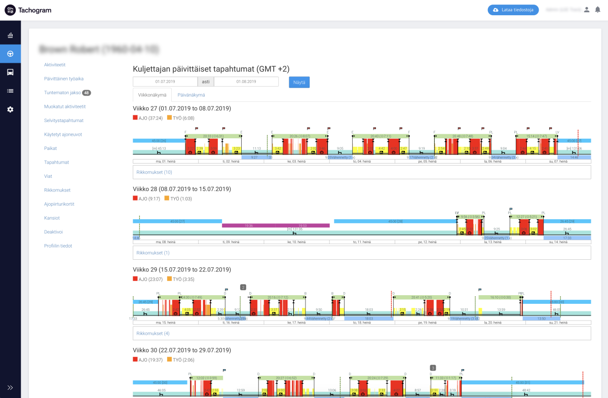 Kuljettajien hyvinvointi on yhtä tärkeää kuin tieolosuhteet ja ajoneuvojen tekninen kunto. Kuljettajien työaikojen seuranta etenkin logistiikassa ja kaukoliikenteessä auttaa valvomaan, toimivatko he kansainvälisten lainsäädäntöjen mukaisesti ja onko heillä riittävästi ajo- ja lepoaikaa. Tämä on erittäin tärkeää, koska vuosittain noin 41% kaikista Euroopassa rekisteröidyistä sääntörikkomuksista johtuu ajo- ja lepoaikasääntöjen rikkomisesta.