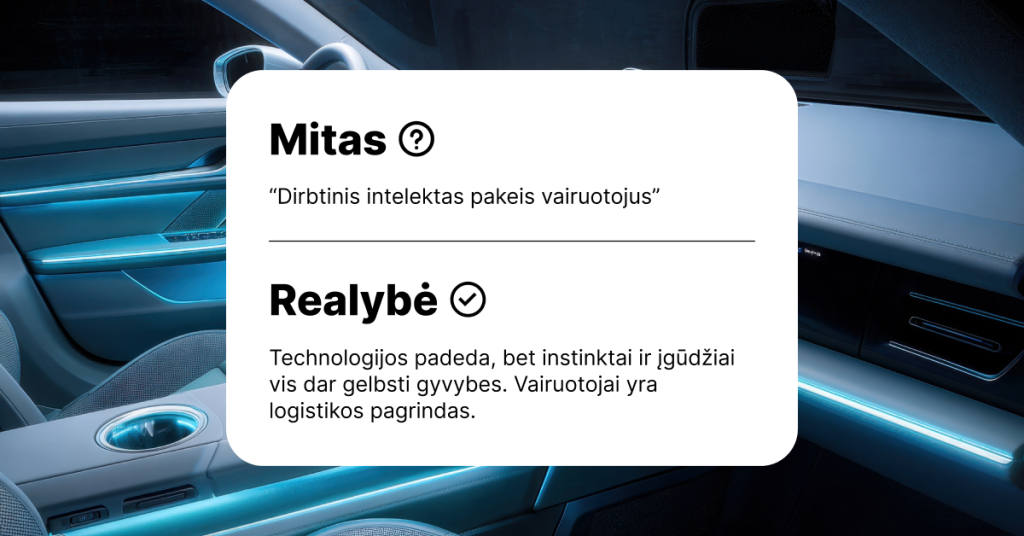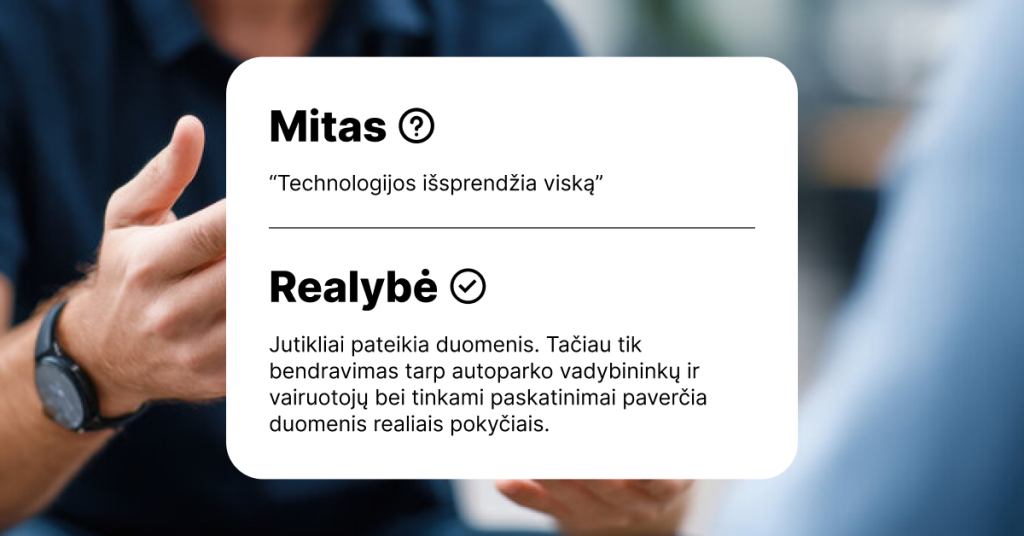 Mitai išlieka, nes jais patogu tikėti. Tačiau jie kainuoja pinigus, laiką ir pasitikėjimą. Tikrovę atitinkantis autoparko valdymas veikia geriausiai tada, kai technologijos dirba išvien su žmonėmis.
