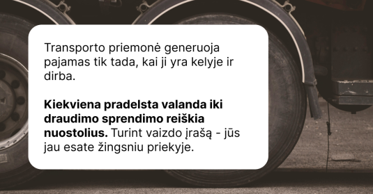 Autoparko valdymo lygmenyje tai reiškia daugiau nei tik saugumą. Tai reiškia stabilesnį verslo ritmą: mažiau prastovų, mažiau nenumatytų išlaidų ir mažiau laiko, skirto problemų sprendimui.
