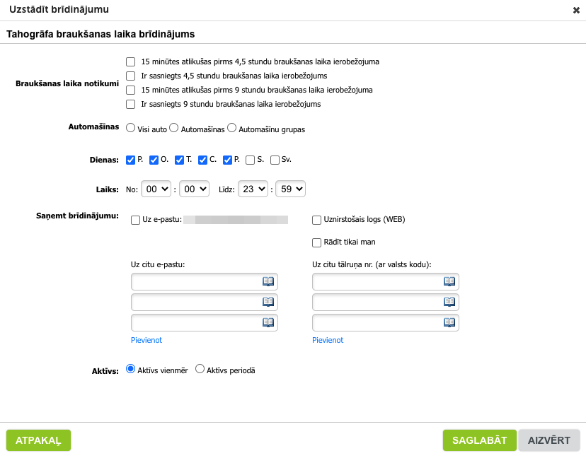 - Sekot līdz darbinieku braukšanas laikam reāllaikā un uzstādīt paziņojumus par atpūtas pauzes tuvošanos;