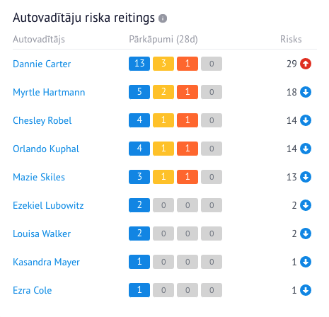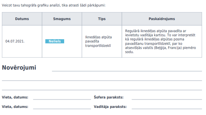 - Apskatīt jau izanalizētus tahogrāfa datus, ļaujot efektīvāk pārvaldīt riskus;