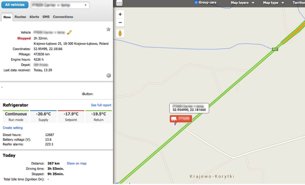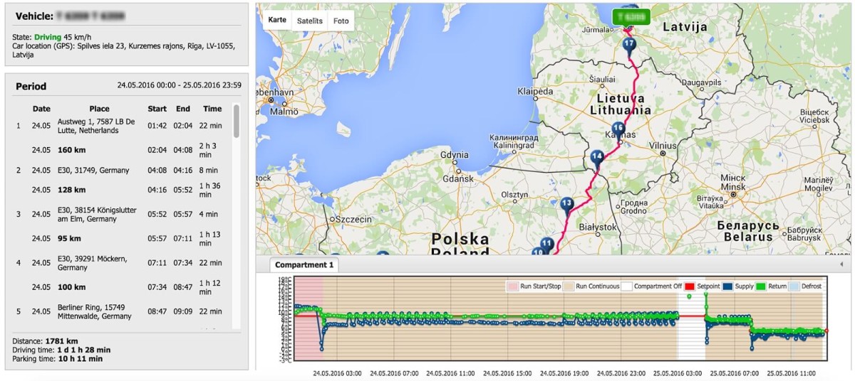 Klientiem ir iespēja sekot līdzi gan kravas atrašanās vietai, gan saldētavas datiem reālajā laikā.