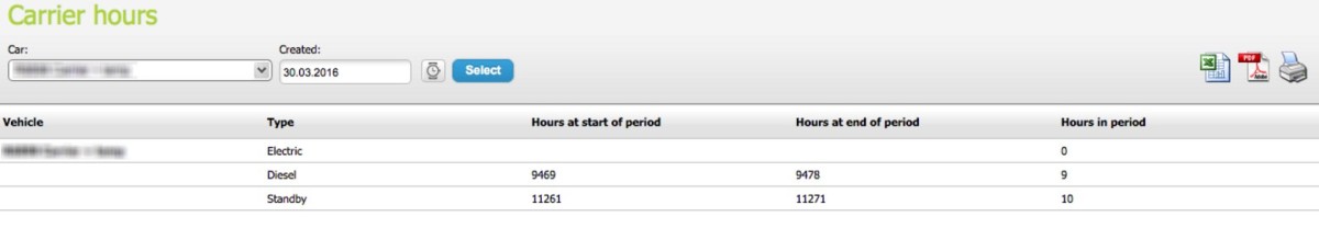 Carrier un Thermo King saldētavas arī sniedz informāciju par to, cik stundas vienība darbojās katrā no režīmiem (dīzeļdegviela / elektro). Šo informāciju var izmantot, lai aprēķinātu aptuveno degvielas patēriņu un tādējādi kontrolētu potenciālas degvielas zādzības.