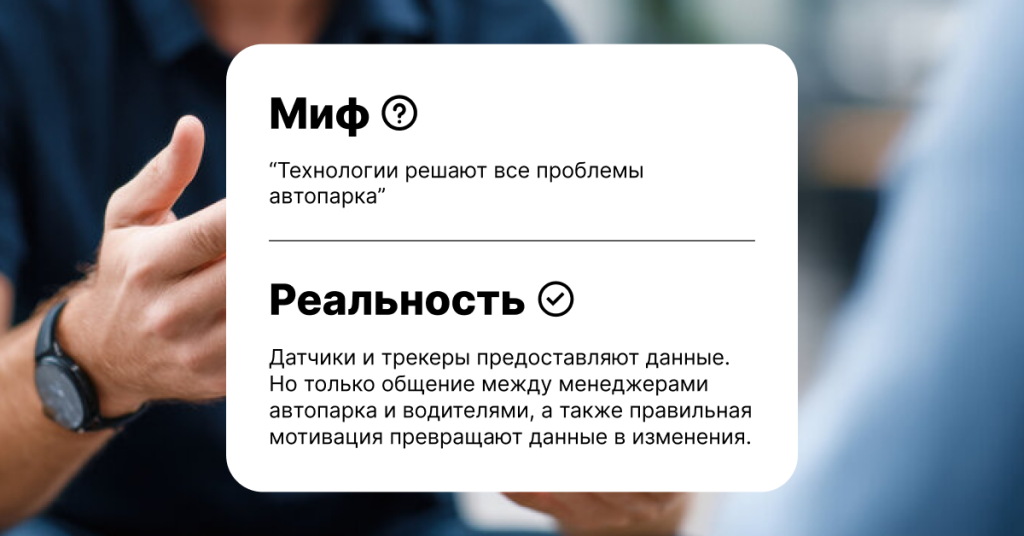 Мифы живучи, потому что в них легко поверить. Но они обходятся компаниям дорого и разрушают доверие внутри команды. Управление автопарком, основанное на реальных данных и ориентированное на людей, – это и есть путь к экономии, безопасности и стабильной работе.