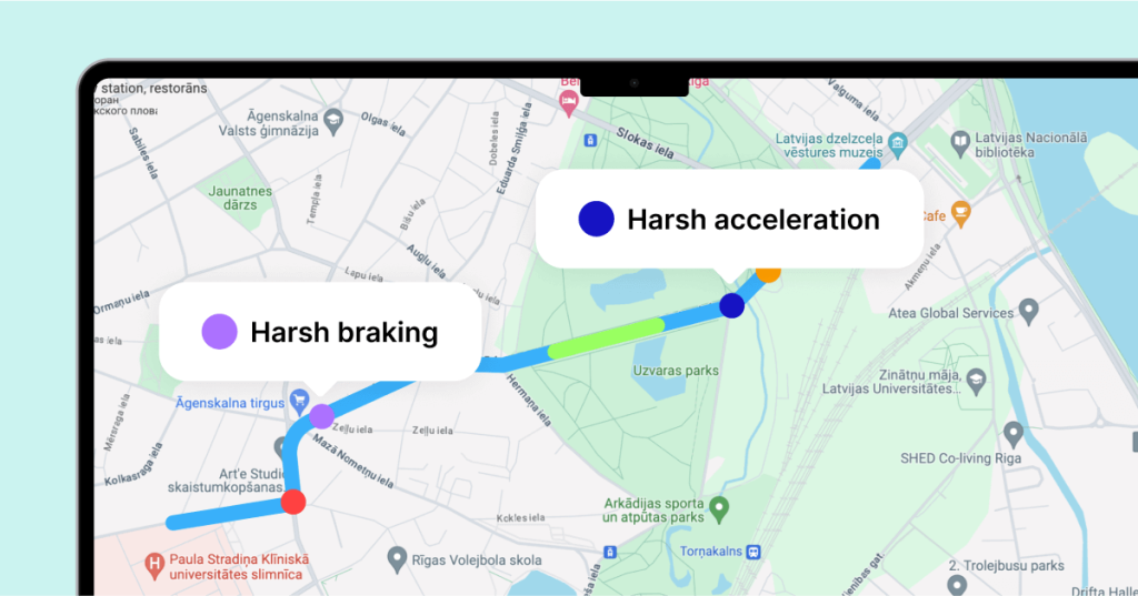 Driver behaviour monitoring serves as a friendly co-pilot, offering analysis of driving patterns. It alerts both managers and drivers about potentially dangerous habits like harsh acceleration, sudden braking, or sharp cornering. The acquired data can be used for personalised coaching, and some companies even run performance competitions for their employees, achieving remarkable driving score improvements.
