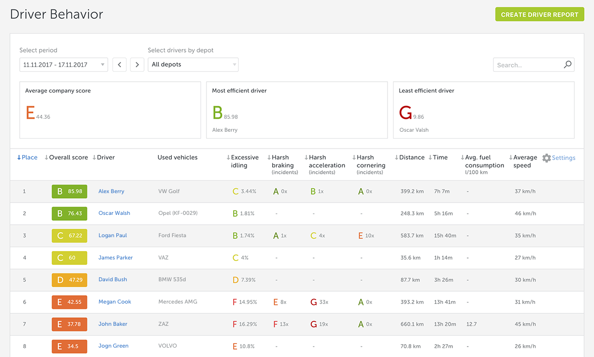 These criteria are used to assign drivers performance ratings from A to G and to prepare a more detailed report that showcases each driver’s habits.